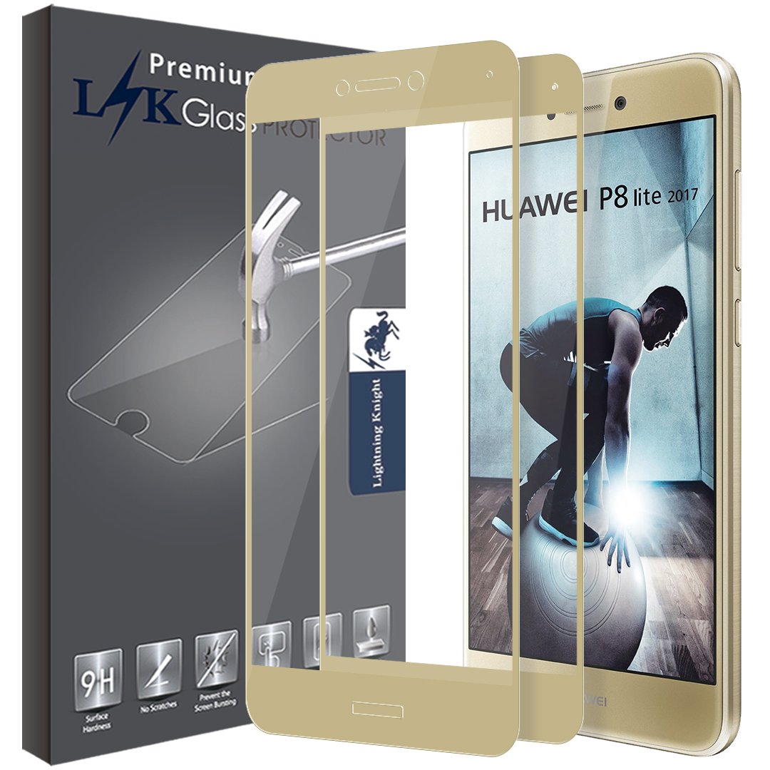 _2 Pack_ Huawei P8 Lite 2017 Pellicola Protettiva_ LK _Copertura Completa_ Protezione Schermo Vetro Temperato Screen Protector _Garanzia di Sostituzione a Vita_-Oro